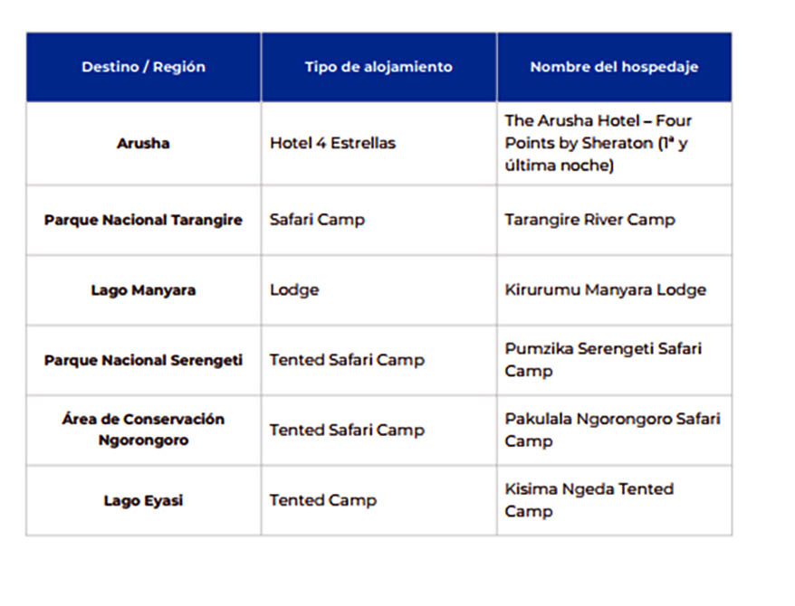 *Nota. El safari en Manyara se podrá realizar la tarde del día 3 o la mañana del 4.