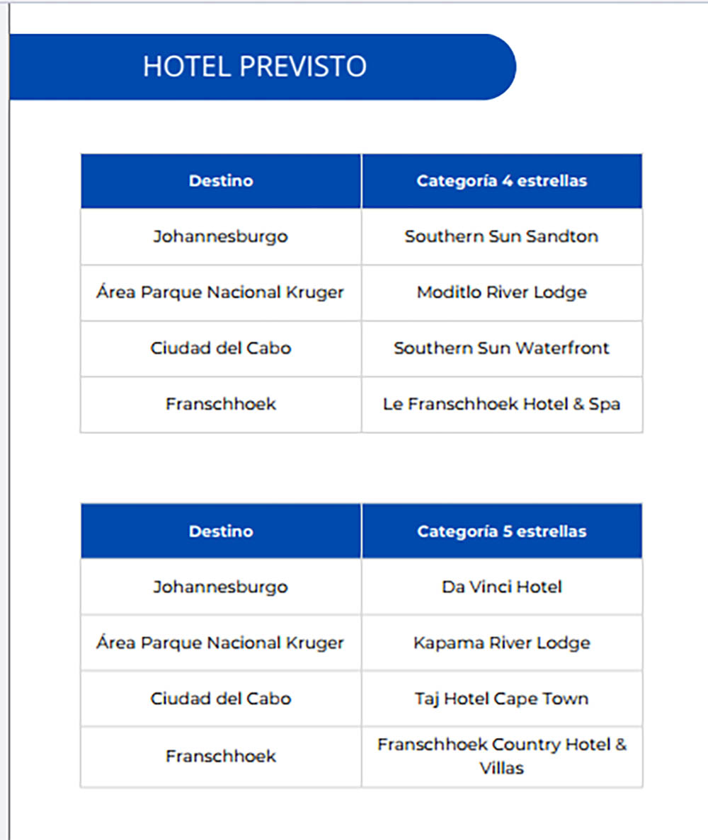 Después del check-out, será llevado por su guía en español al Aeropuerto de Johannesburgo para abordar su vuelo con destino al área del Kruger.